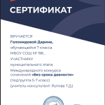 III место за работу «Comparison of school systems in Russia, England and the USA» II Всероссийского (с международным участием) конкурса исследовательских, проектных и научно-методических работ учащихся и студентов «Как прекрасен этот мир» по направлению «Иностранные языки», 12-23 апреля 2021 г.