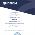 В декабре 2020 г. учитель начальных классов МБОУ СОШ № 196 Коршикова Наталья Александровна приняла участие во «Всероссийском дистанционном конкурсе среди классных руководителей на лучшие методические разработки воспитательных мероприятий».