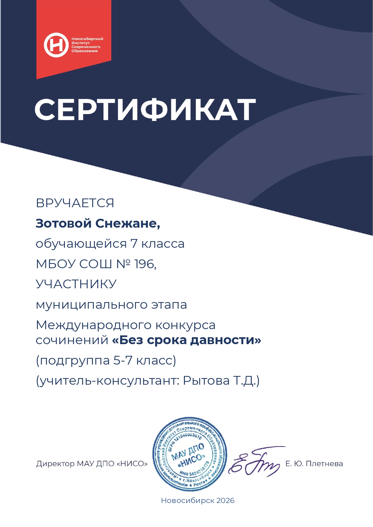 В октябре 2020 г. учащиеся МБОУ СОШ № 196 приняли участие в муниципальном этапе конкурса школьных сочинений «Что я знаю о местном самоуправлении».