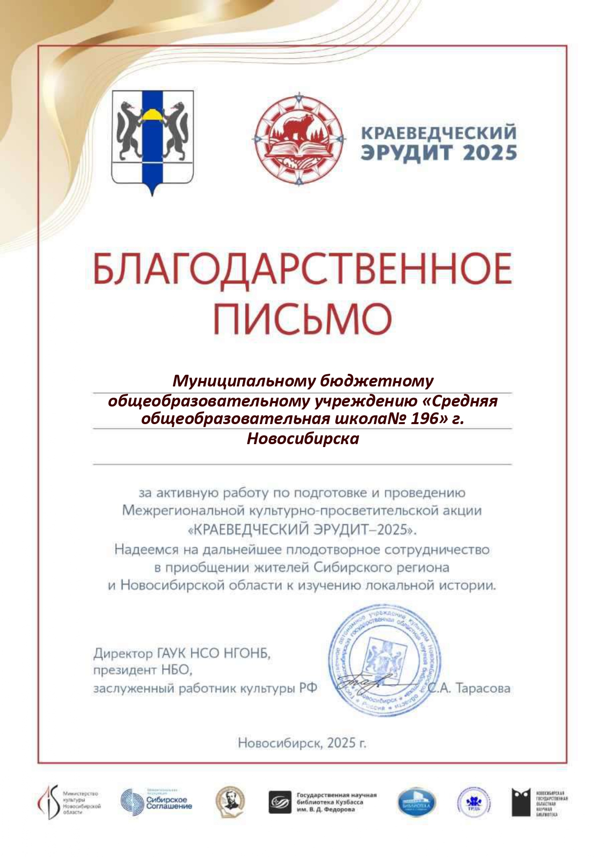 Двое учащихся МБОУ СОШ № 196 стали лауреатами районного этапа XL Открытой городской научно-практической конференции НОУ «Сибирь» в 2020/2021 учебном году (секции: Английский язык (культурология), Лингвистика (русский язык).