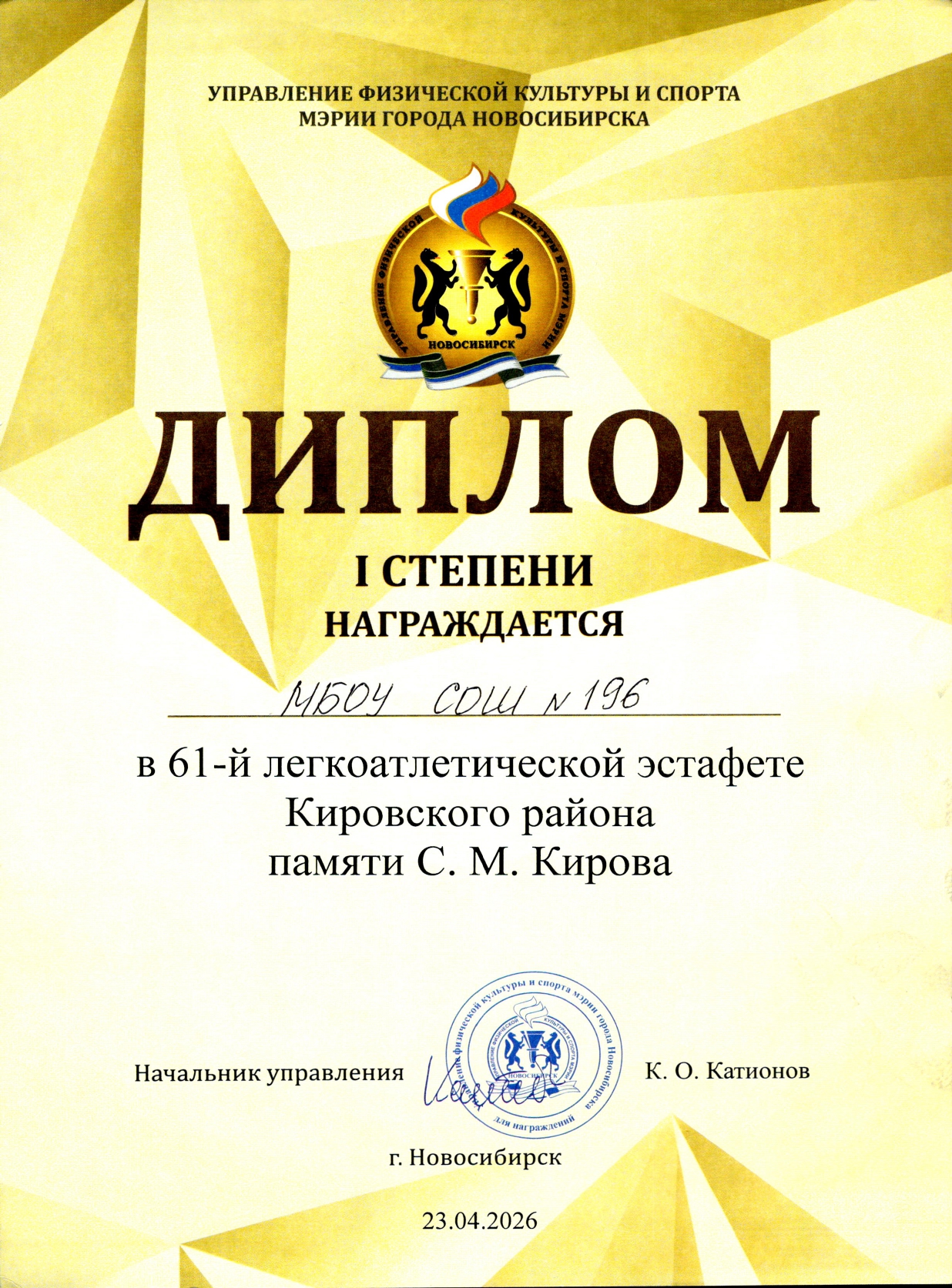 27 апреля 2022 г. команда школьного спортивного клуба «Сатурн-196» под руководством учителей физической культуры Потаповой Зои Васильевны приняла участие в 57 легкоатлетической эстафете Кировского района памяти С.М. Кирова. Поздравляем ребят и тренера с 1 местом!