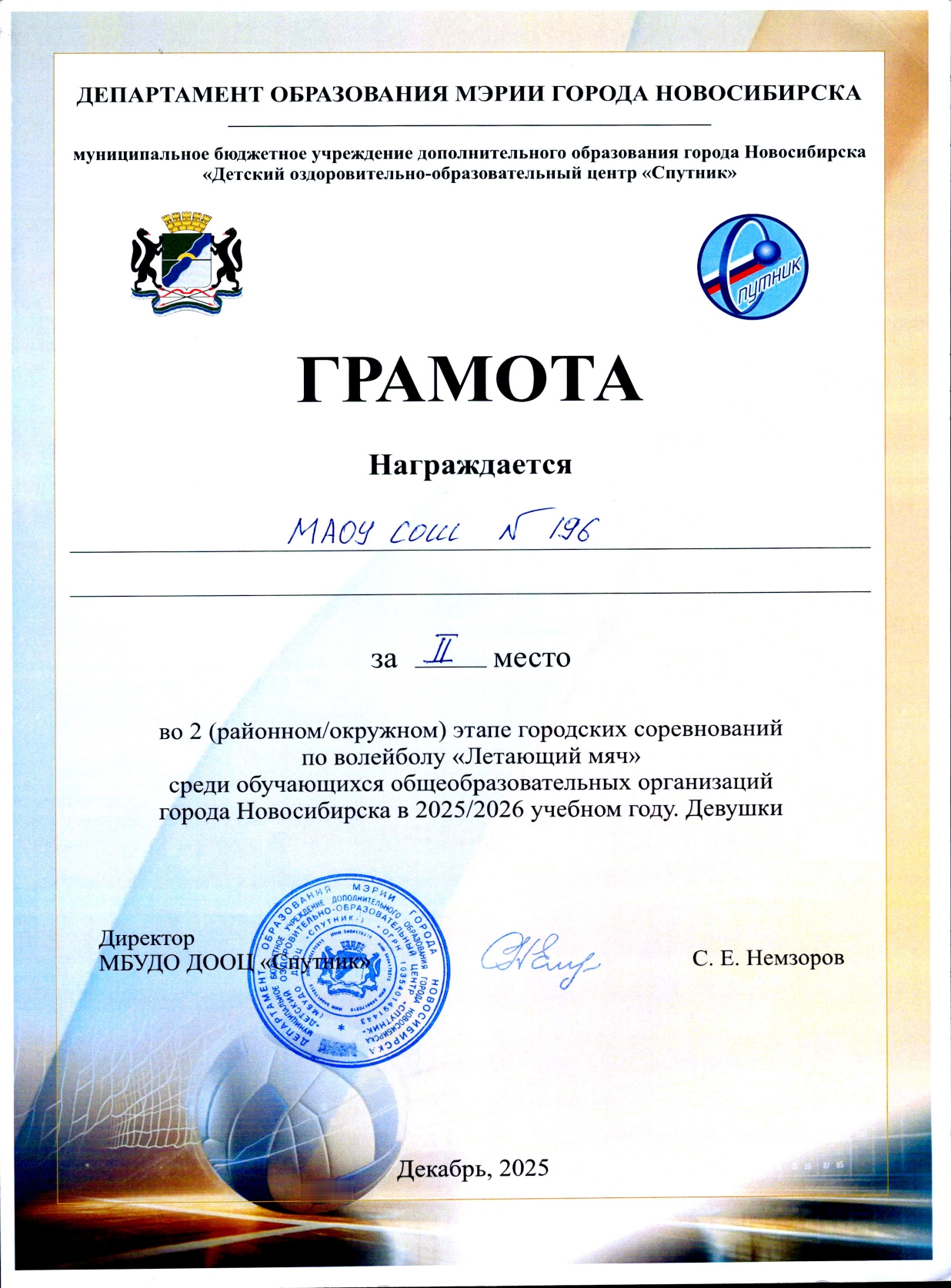 24 декабря 2022 года прошли соревнования по хоккею на снегу в рамках проекта «Новосибирск-Новогодняя столица России». Соревнования проходили на стадионе «Фламинго». Участвовали 3 команды: СОШ 196, СОШ 134, Лицей 176. Наши ребята заняли 1 место.