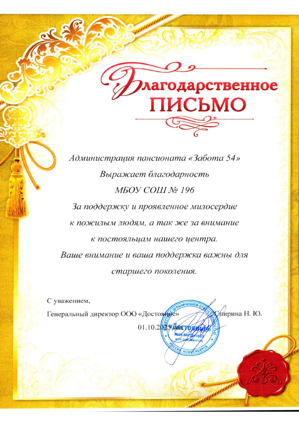 В ноября 2021 г. учащиеся МБОУ СОШ № 196 под руководством педагогов-организаторов Безменовой Е.В. и Гаряевой М.С. заняли 1 место в номинации «Национальная кухня» открытого молодежного онлайн-фестиваля национальных культур.
