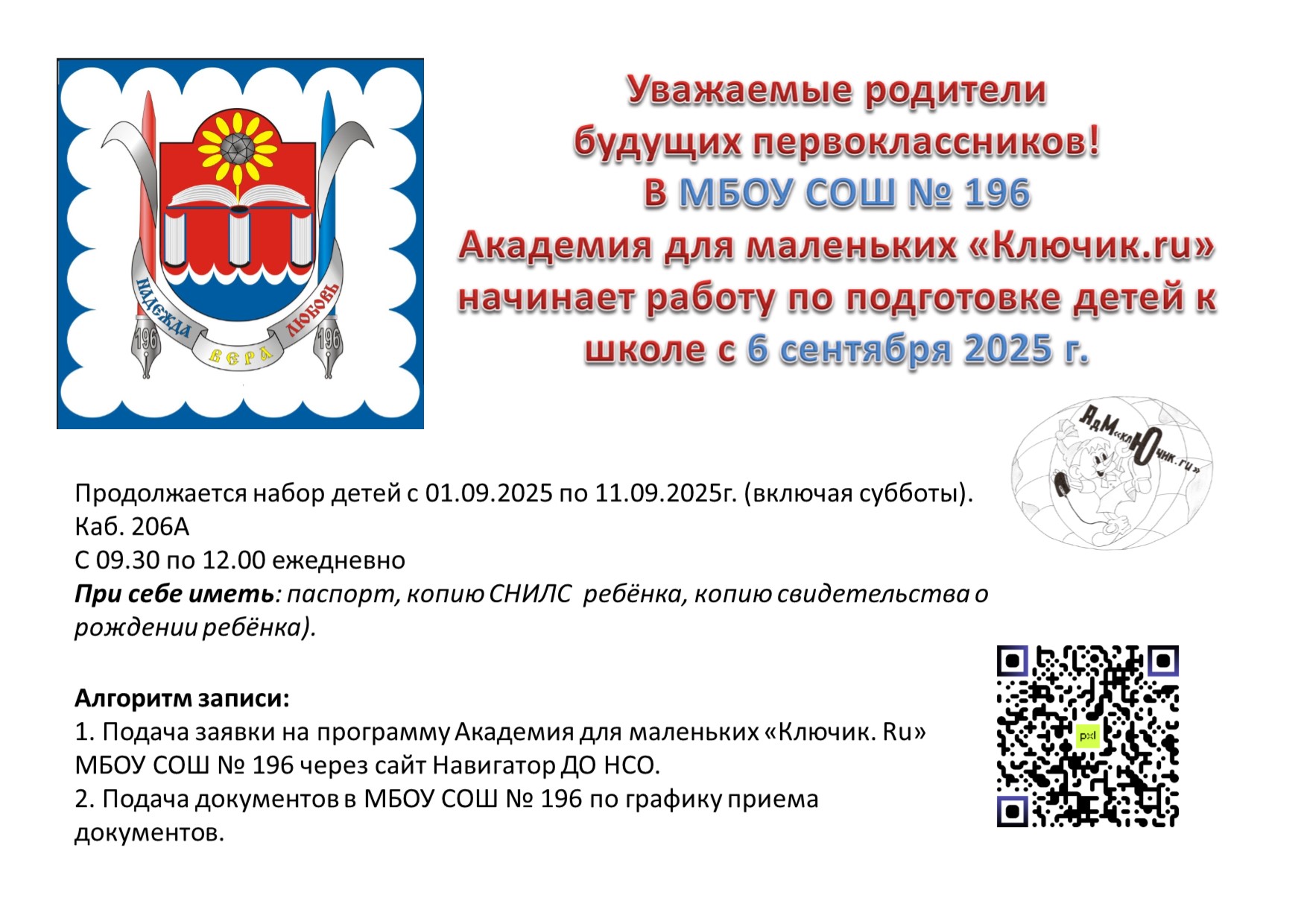 Родительское собрание по организации подвоза обучающихся 1 классов в 2025/2026 учебном году, проживающих на Южно-Чемском жилмассиве и закрепленных за МАОУ СОШ №217, состоится 25 августа 2025 г. в 15.00 блок Б (ул.Саввы Кожевникова, 21).