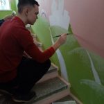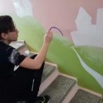 Школа закупила краску, колеры, расходные материалы для нанесения рисунка, в нашей школьной газете прошло голосование по выбору тематики рисунка. В течение месяца иллюстрацию согласовывали ребята и учителя. Волонтерский отряд школы из учащихся 10 «Б» класса сегодня помог начать расписывать стены лестничного пролёта.