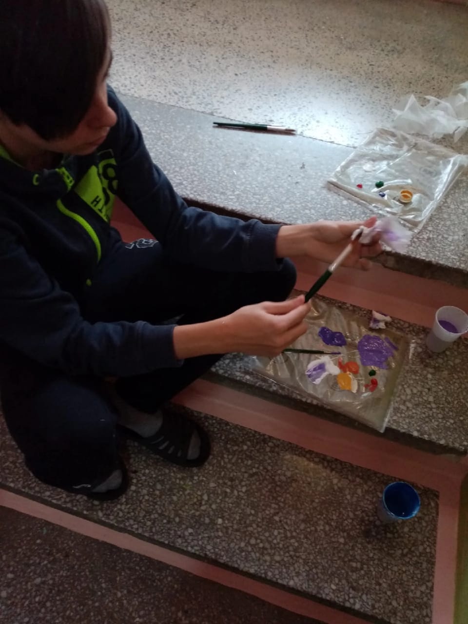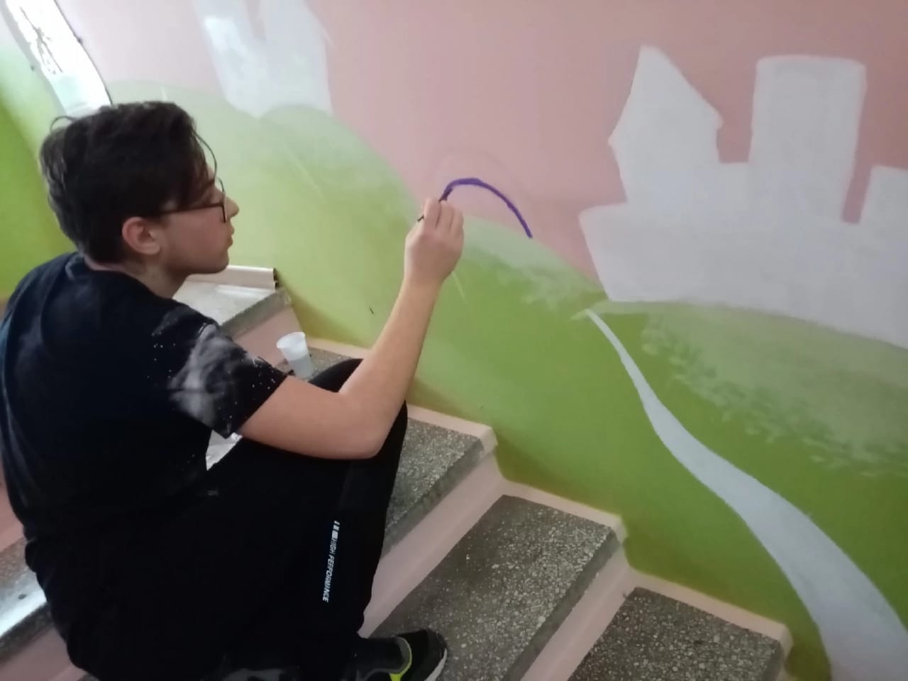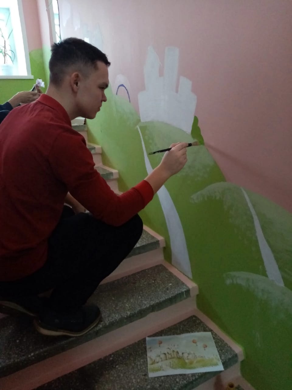 Школа закупила краску, колеры, расходные материалы для нанесения рисунка, в нашей школьной газете прошло голосование по выбору тематики рисунка. В течение месяца иллюстрацию согласовывали ребята и учителя. Волонтерский отряд школы из учащихся 10 «Б» класса сегодня помог начать расписывать стены лестничного пролёта.