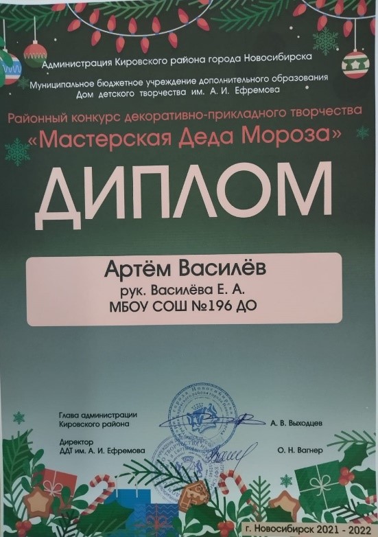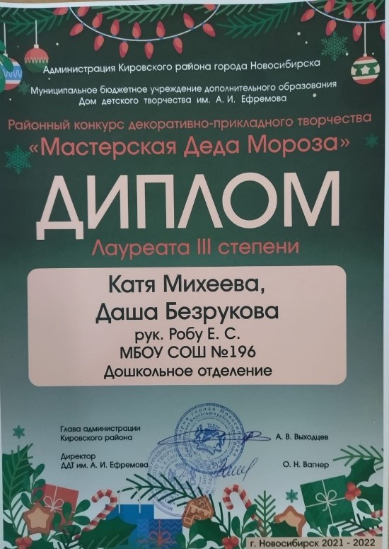 Воспитанники дошкольного отделения приняли участие в районном конкурсе декоративно-прикладного творчества «Мастерская Деда Мороза», который проходил в ДДТ им. А.И. Ефремова. Поздравляем победителей!