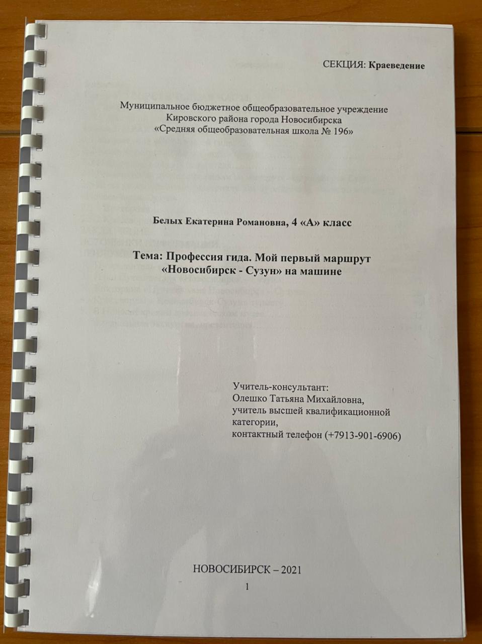 Победителем конкурса стала Белых Екатерина (4А — учитель Олешко Татьяна Михайловна)! Катя подготовила очень интересную работу, составив маршрут «Новосибирск — Сузун», попробовав себя в роли гида. В работе содержится много интересных фактов о маршруте, а также есть интересная викторина. О своем проекте Катя рассказала в Новосибирском государственном краеведческом музее!Большое спасибо вам, девочки, за ваш труд, за интерес к учебе и миру! Огромная благодарность педагогам, вдохновляющим своих учеников и во всем им помогающим!