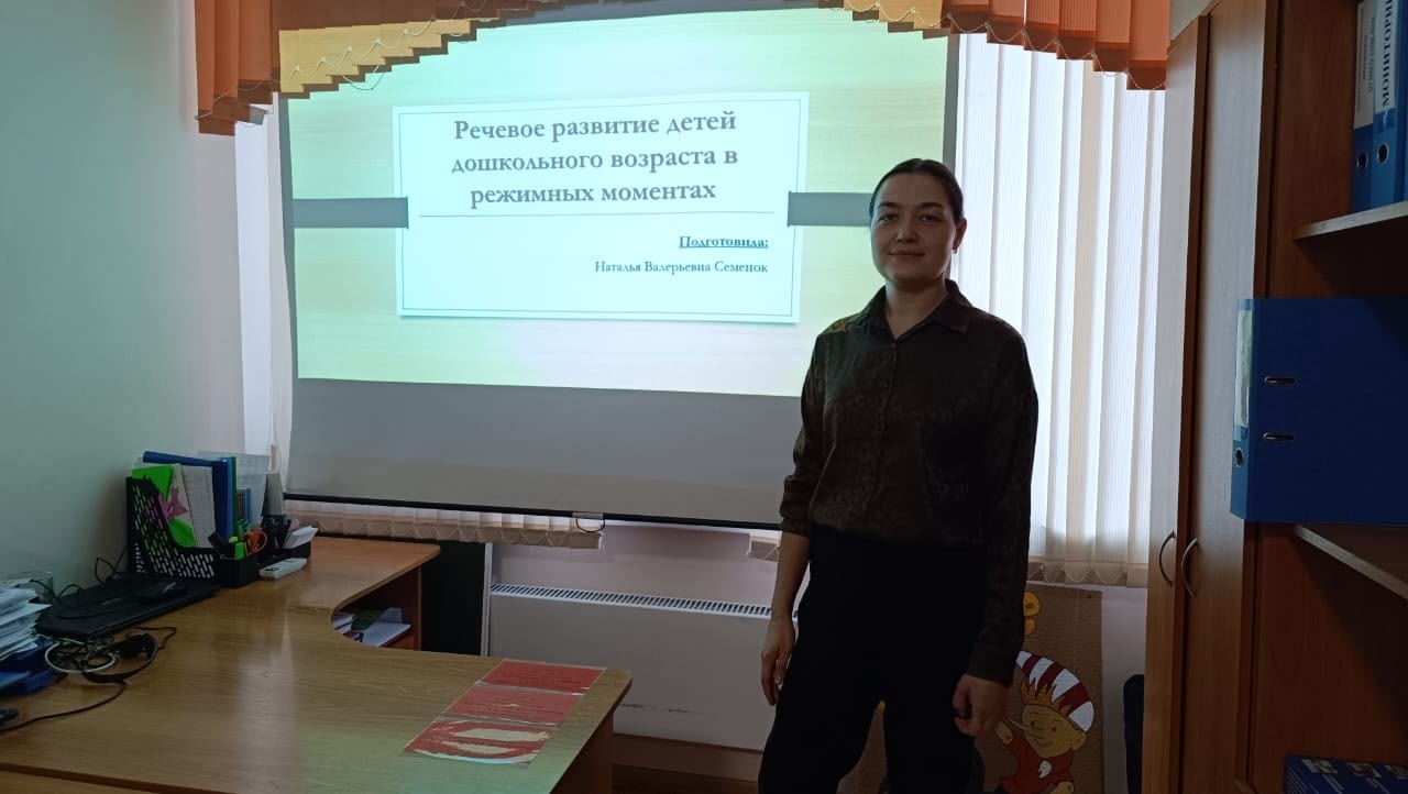 Учитель — логопед Наталья Валерьевна Семенок провела для воспитателей семинар «Развитие речи дошкольников в режимных моментах».