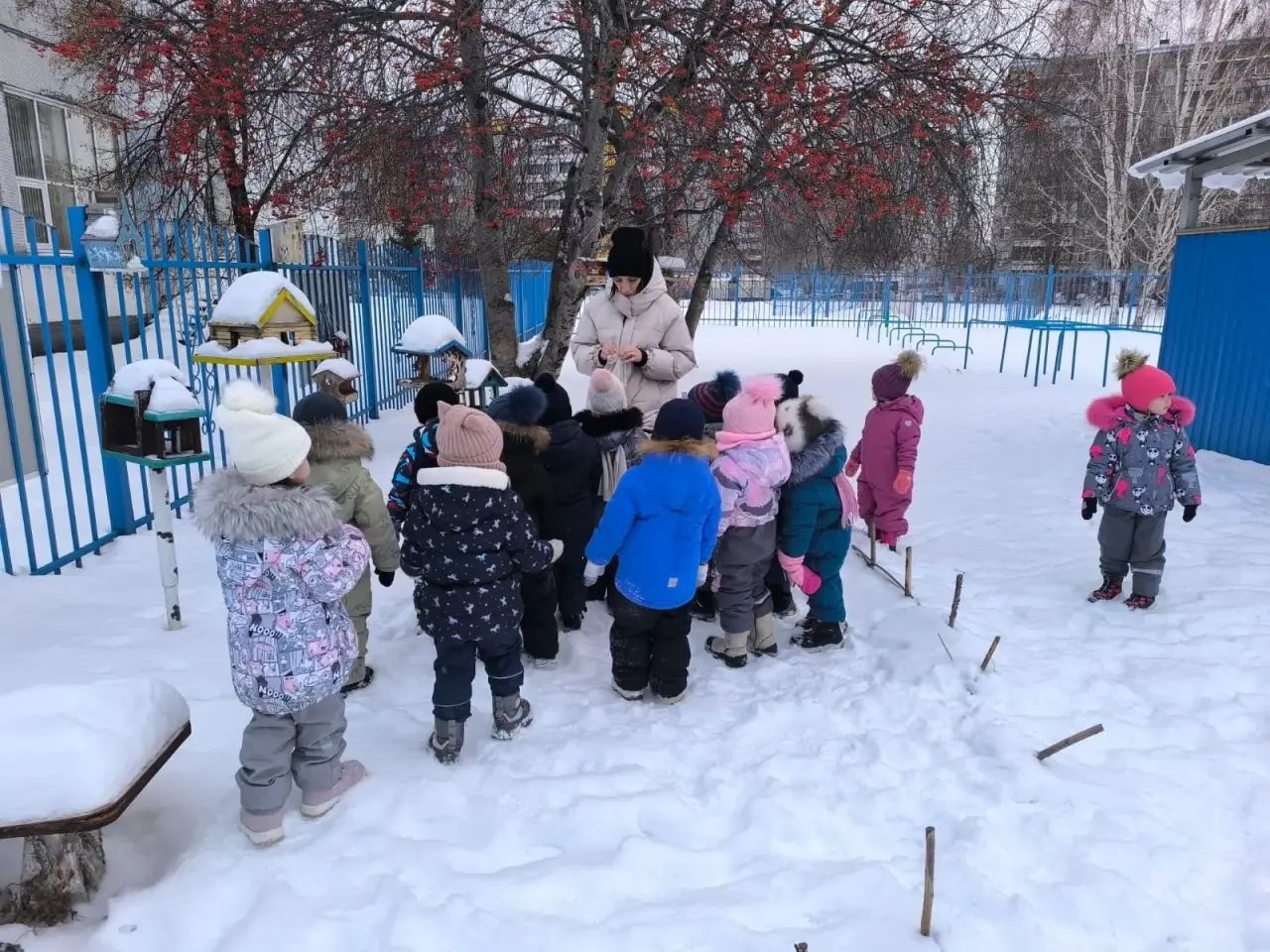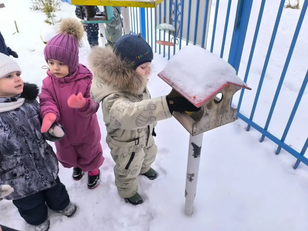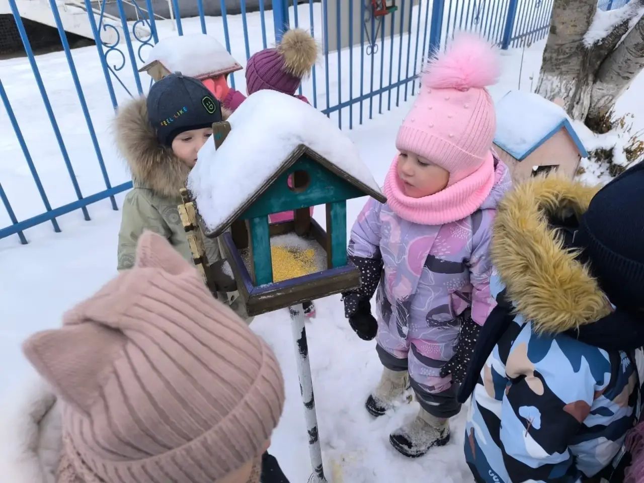 Вместе с воспитателем ребята наполнили кормушки специально подготовленным угощением: нежареными семечками и пшеном. Теперь у пернатых гостей есть своя собственная «столовая».