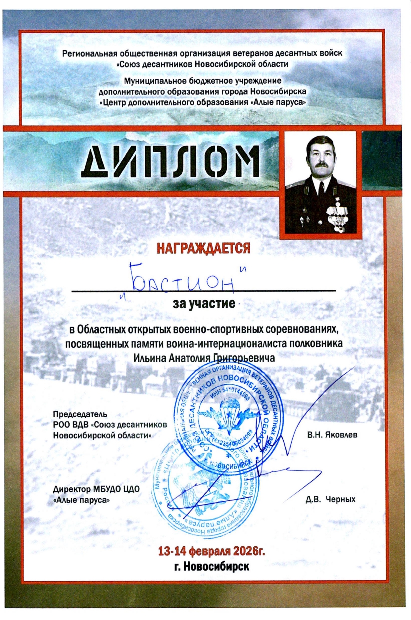 11.12.2025 г. в образовательном парке им. О. Кошевого стартовал 7 слёт регионального отделения ВВПОД «ЮНАРМИЯ» Новосибирской области. Дейнер Кирилл и Янченко Анастасия принимают участие от школьного юнармейского отряда «Бастион», которые были отмечены грамотой за активное участие в жизни Движения «Юнармия», верность Отечеству и Юнармейскому братству.
